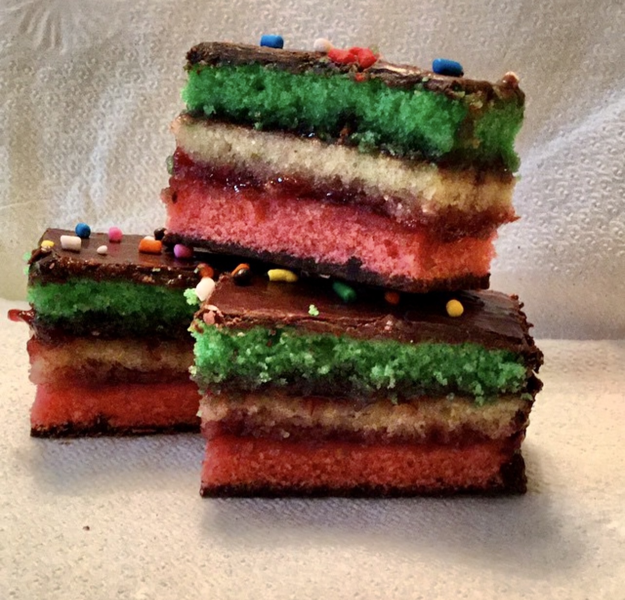 So, low and behold, the infamous rainbow cookies. Another staple in our family. These rainbow cookies are the traditional recipe, coming from an Italian home. You can’t get any better than this recipe!